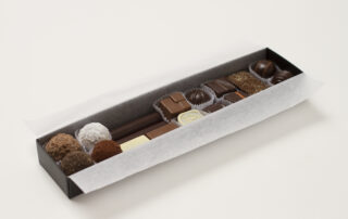 También nos interesa la estética. Por eso tenemos una línea de chocolates con formas innovadoras de puro chocolate (crayones, bloques de chocolate, joystick,) y un packaging de calidad que contiene el detalle de los ingredientes utilizados.